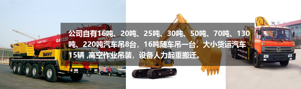 ? ????? 湘鄉(xiāng)市陽光運(yùn)輸有限公司前身由湖南鐵合金集團(tuán)汽運(yùn)公司改制重組而成。經(jīng)過多年的市場磨礪發(fā)展,公司設(shè)立工程機(jī)械租賃部、設(shè)備安裝維護(hù)部以及物流運(yùn)輸中心。公司自有16噸、20噸、25噸、30噸、50噸、70噸、130噸、220噸汽車吊8臺,16噸隨車吊一臺,大小貨運(yùn)汽車15輛 ,高空作業(yè)吊裝,設(shè)備人力起重搬遷。公司地理位置優(yōu)越,實(shí)力雄厚,歷史悠久,有二十幾年吊裝行業(yè)的經(jīng)驗。 公司的理念:精誠團(tuán)結(jié),精益求精,客戶的滿意就是我們最大的愿望! ...